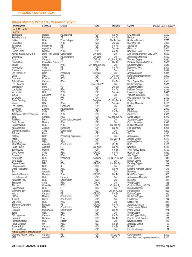 Major Mining Projects, Year-end 2023*