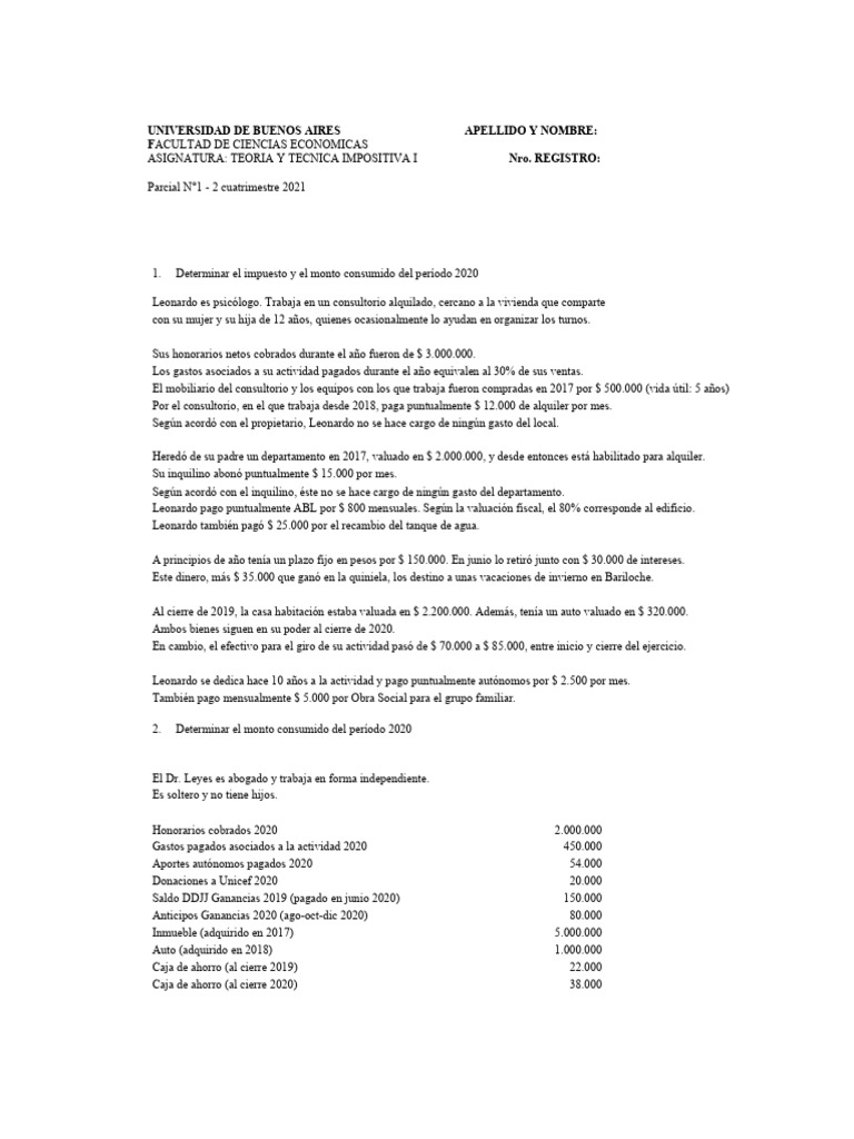 UNIVERSIDAD DE BUENOS AIRES APELLIDO Y NOMBRE: