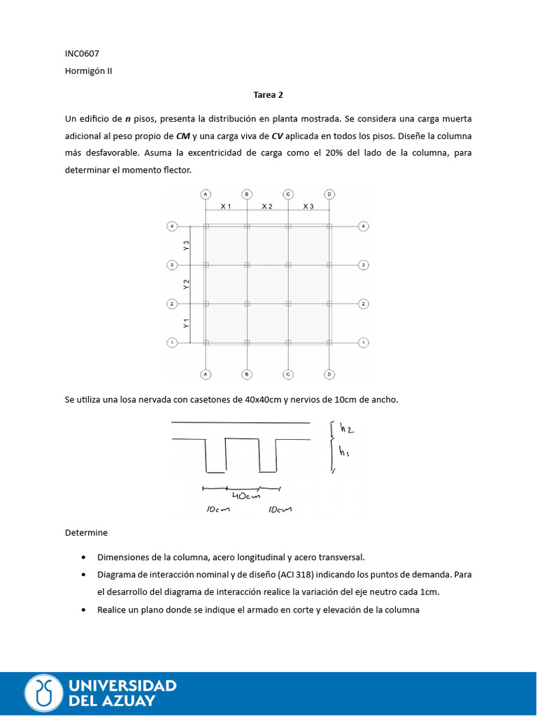 Un edificio de n pisos, presenta la distribución en planta mostrada. Se considera una carga muerta