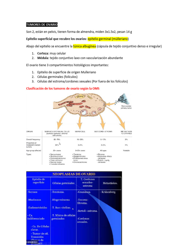 Clasificación de los tumores de ovario según la OMS