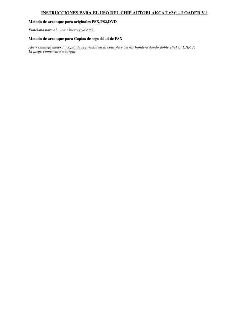 INSTRUCCIONES PARA EL USO DEL CHIP AUTOBLAKCAT v2.0 + LOADER V.