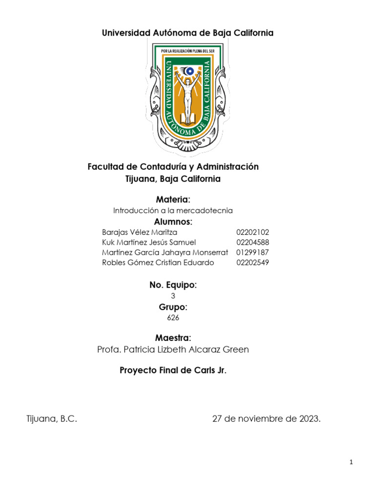 trabajo tiene la finalidad de adjuntar toda la información acerca de Carl’s Jr. Ya