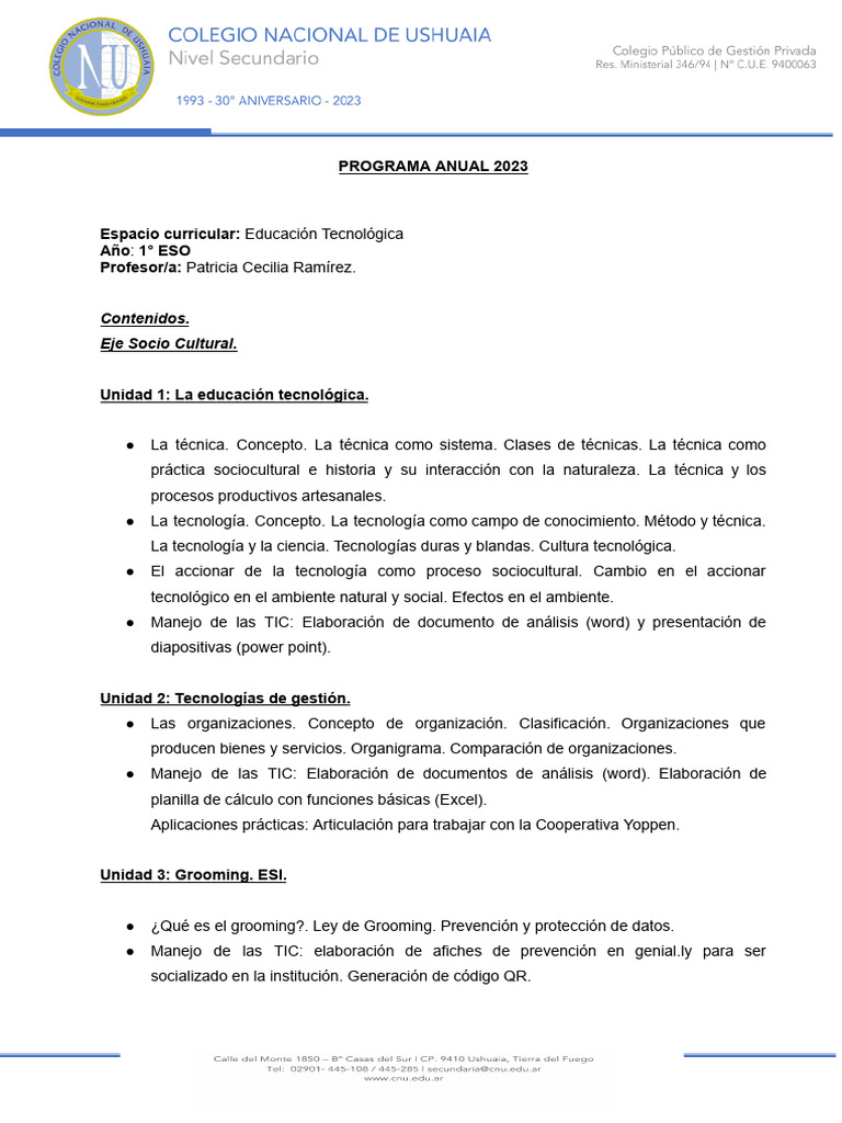➔ La docente le proveerá de materiales como fotocopias y guías de estudio. Por ejemplo