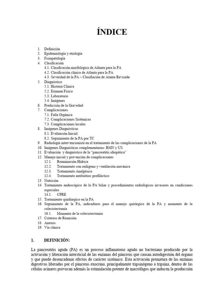 La pancreatitis aguda (PA) es un proceso inflamatorio agudo no bacteriano producido por la