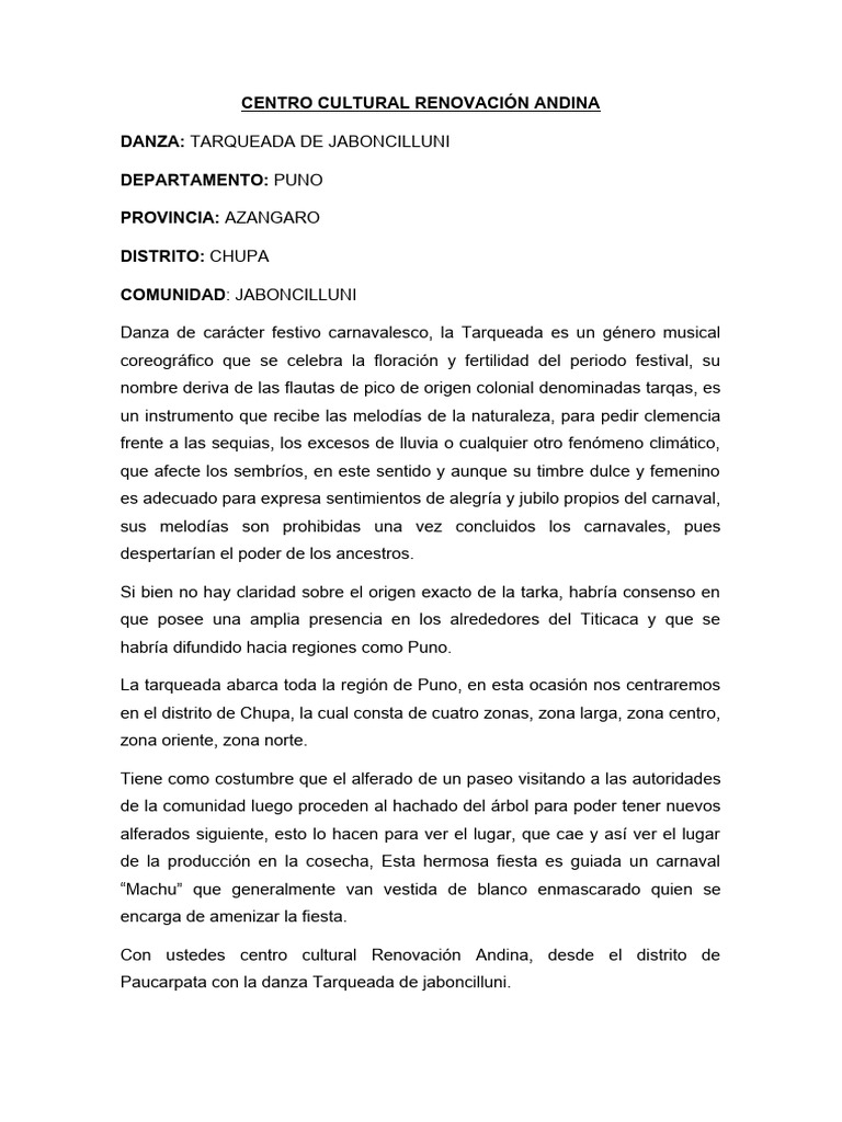 Paucarpata con la danza Tarqueada de jaboncilluni.