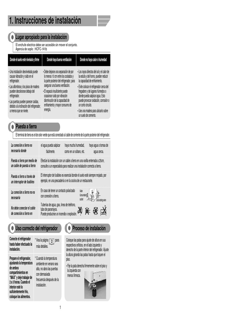 • Las alfombras y los pisos de madera asegurar una buena ventilación. • Evite colocar el refrigerador cerca del
