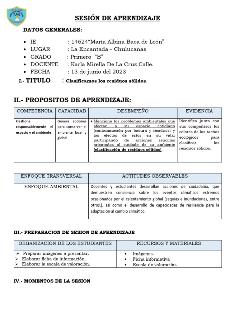 III.- PREPARACION DE SESION DE APRENDIZAJE