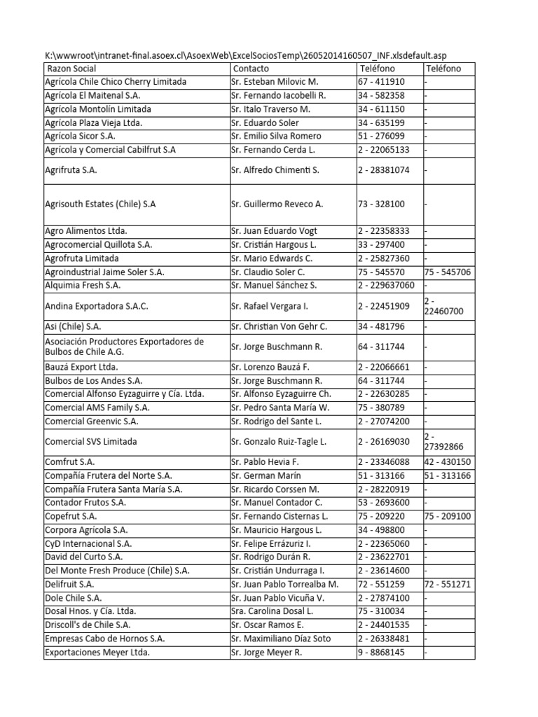 Exportadora Río Blanco Ltda. Sr. Sergio Barros F. 2 - 24335100 -