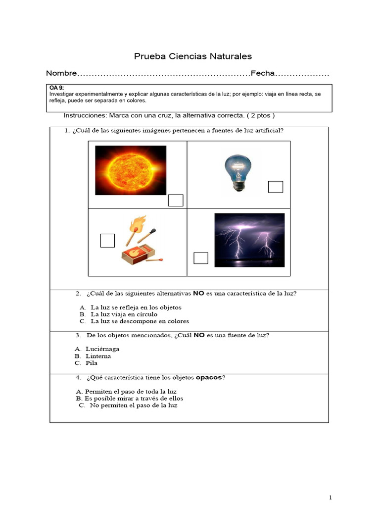 Prueba Ciencias Naturales
