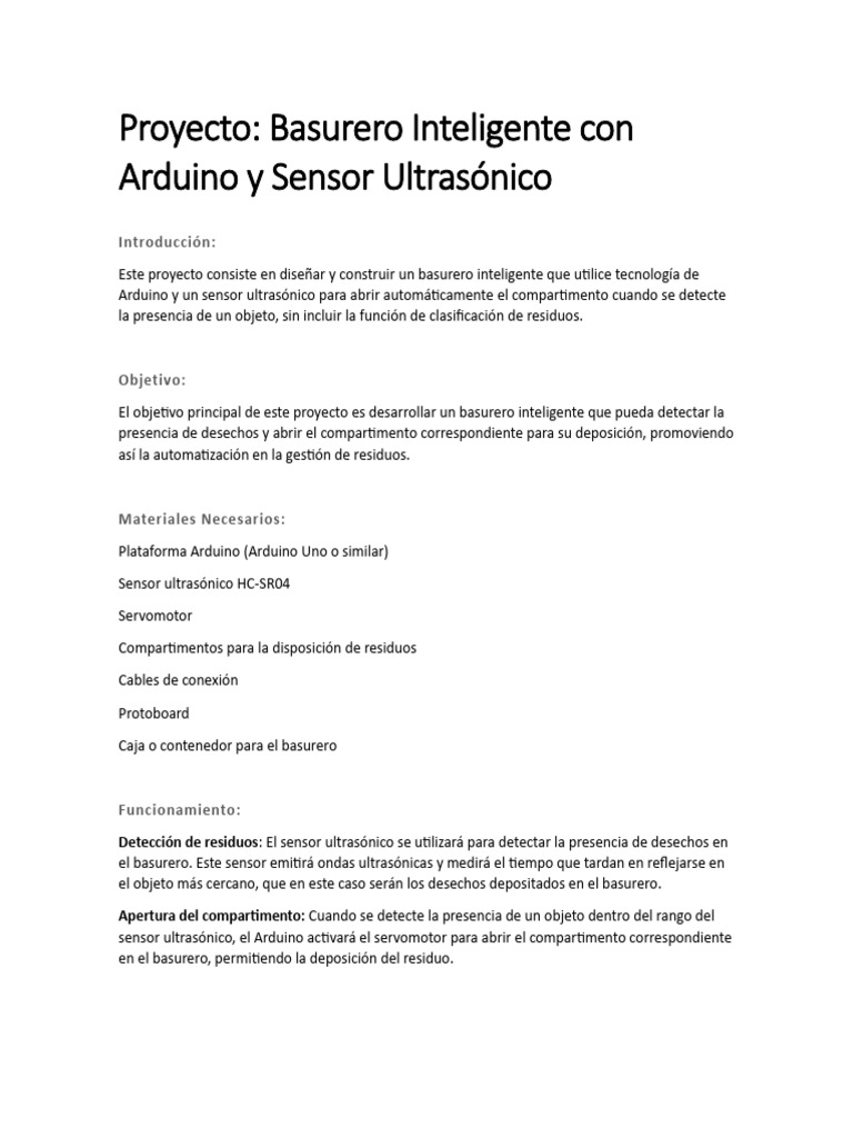 El objetivo principal de este proyecto es desarrollar un basurero inteligente que pueda detectar la