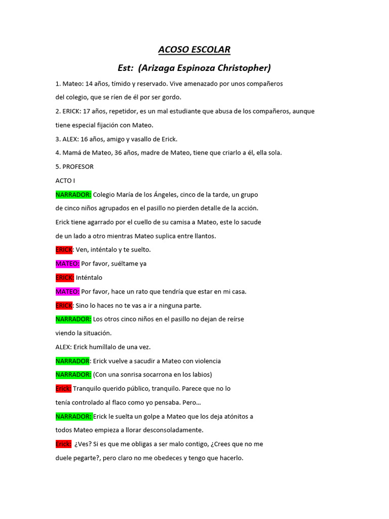2. ERICK: 17 años, repetidor, es un mal estudiante que abusa de los compañeros, aunque