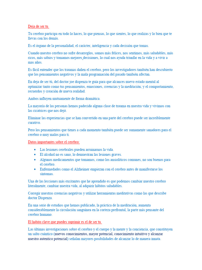 En deja de ser tú, del doctor joe dispenza te guía para que alcances nuevo estado mental al