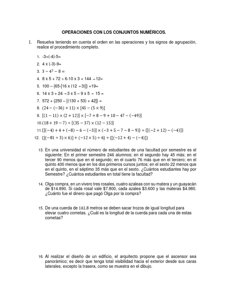 I. Resuelva teniendo en cuenta el orden en las operaciones y los signos de agrupación,