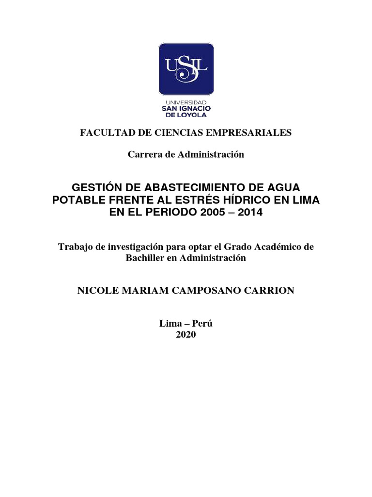 gestión de abastecimiento de agua potable frente al estrés hídrico en Lima durante el