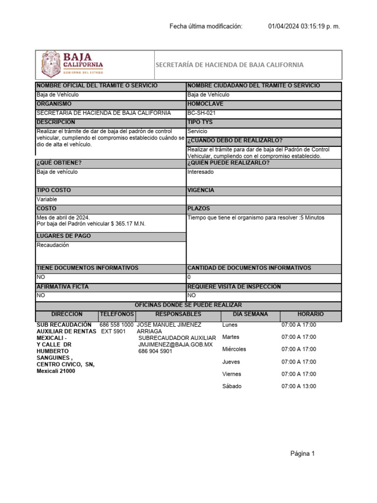 SECRETARÍA DE HACIENDA DE BAJA CALIFORNIA BC-SH-021