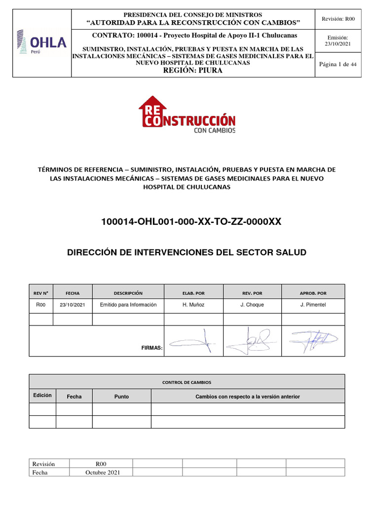 CONTRATO: 100014 - Proyecto Hospital de Apoyo II-1 Chulucanas Emisión: