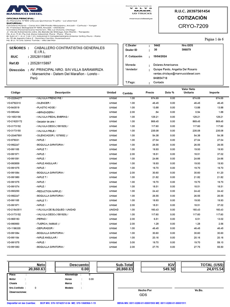 RUC : 20528115897 F. Cotización : 19/04/2024