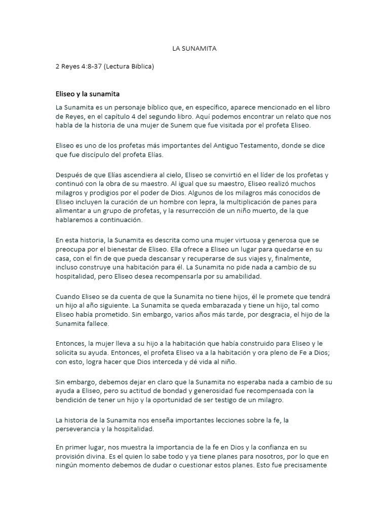habla de la historia de una mujer de Sunem que fue visitada por el profeta Eliseo.