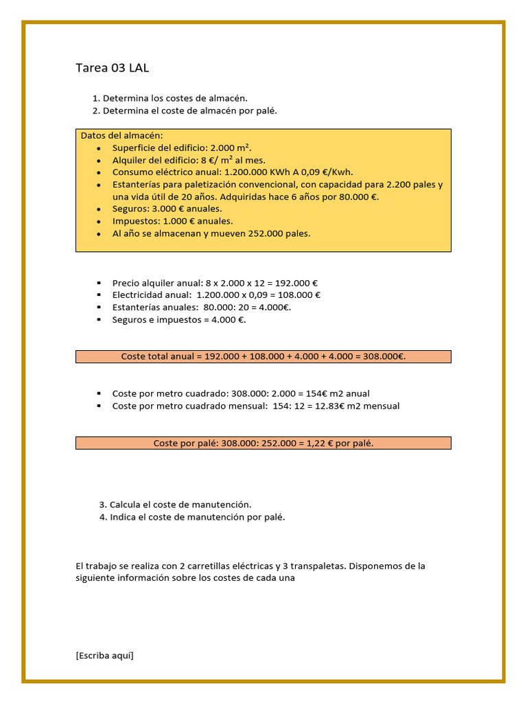 Coste por palé: 308.000: 252.000 = 1,22 € por palé.