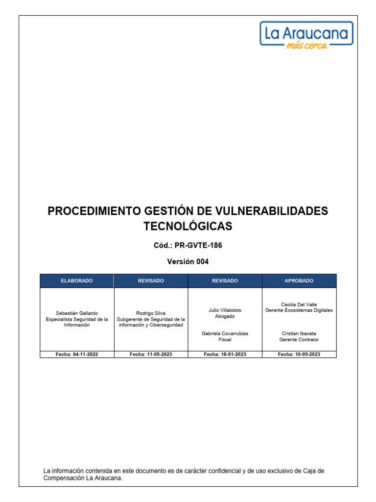 La Araucana C.C.A.F., permitiendo así mitigar los riesgos asociados a la explotación maliciosa de éstas,