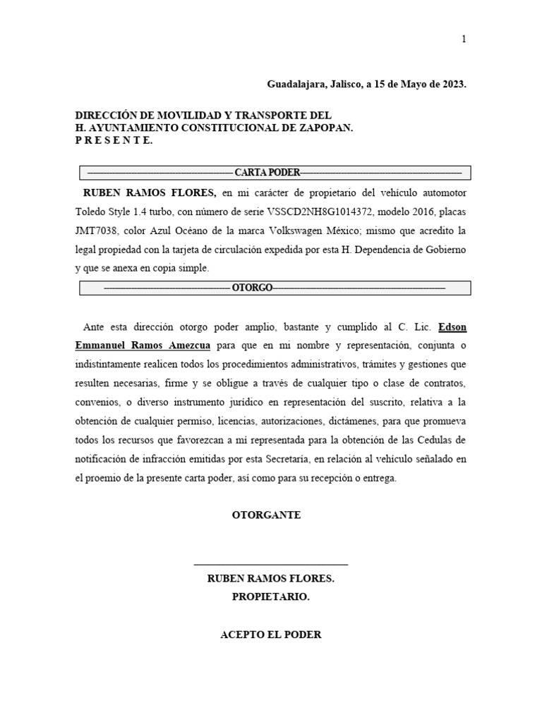 Emmanuel Ramos Amezcua para que en mi nombre y representación, conjunta o