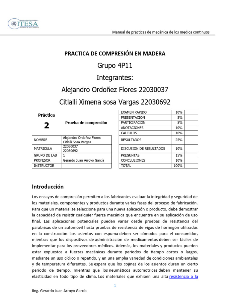 1. En primer lugar se procederá a determinar las dimensiones de las probetas e identificar en qué