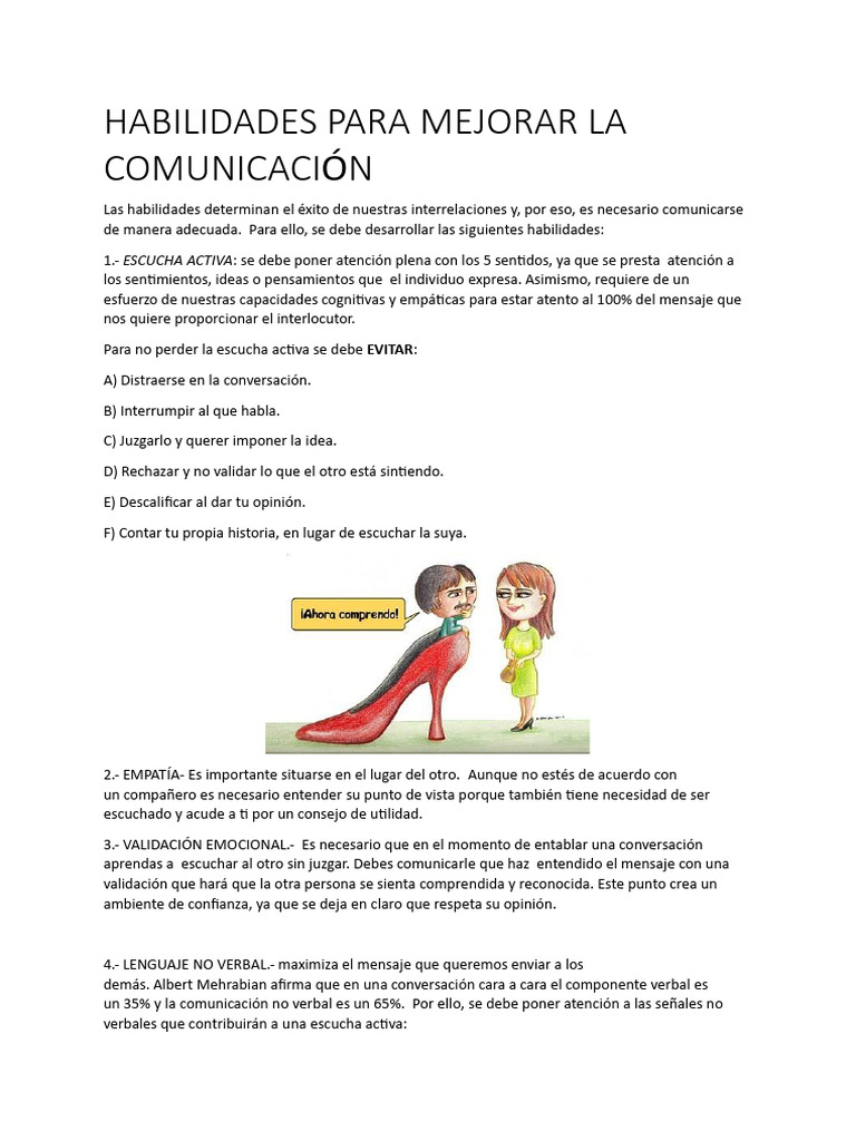de manera adecuada. Para ello, se debe desarrollar las siguientes habilidades: