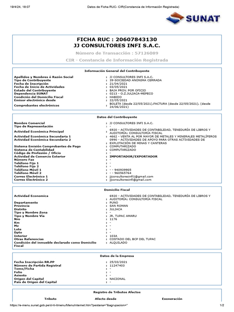 19/4/24, 18:07 Datos de Ficha RUC- CIR(Constancia de Información Registrada)