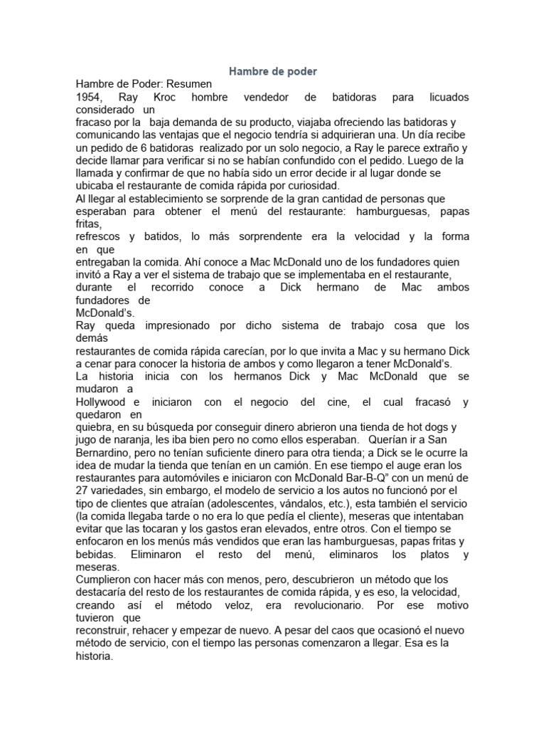 Hambre de Poder: Resumen
