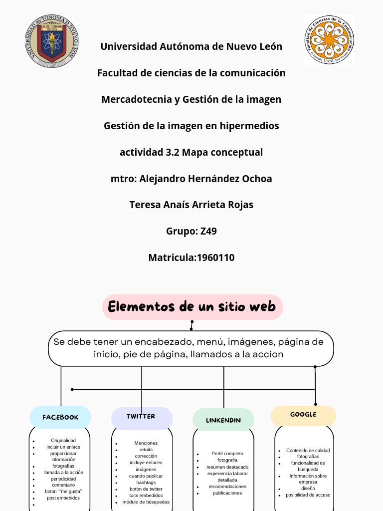 Se debe tener un encabezado, menú, imágenes, página de