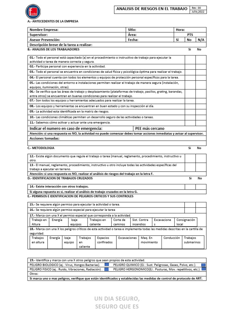 Atención: si una respuesta es NO, realizar el análisis de riesgos del trabajo en la letra F.