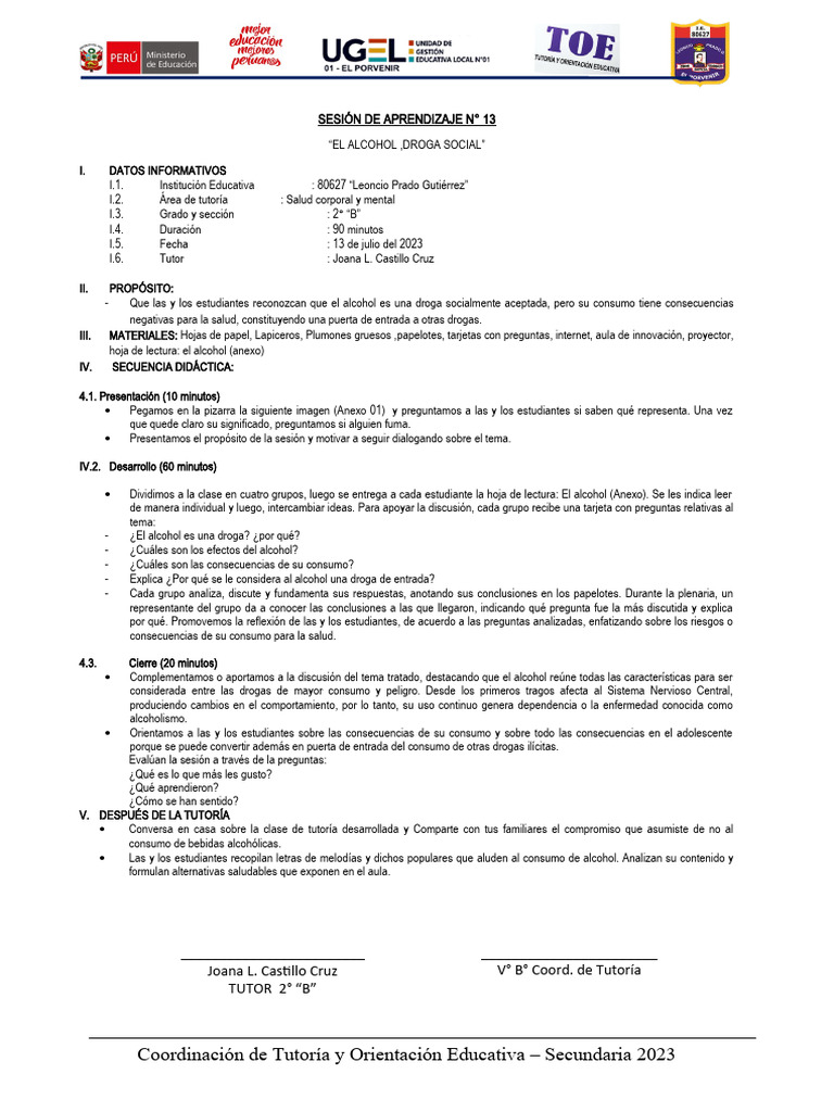 SESIÓN DE APRENDIZAJE N° 13