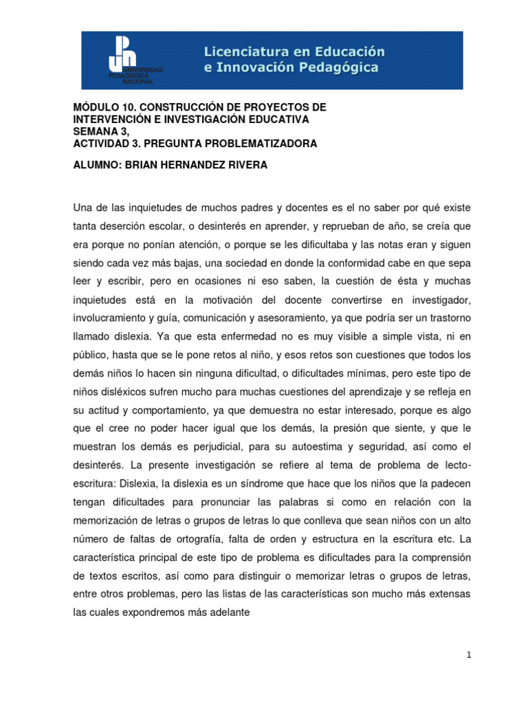 en su espacio de aprendizaje, es necesario conocer el problema que se presenta,