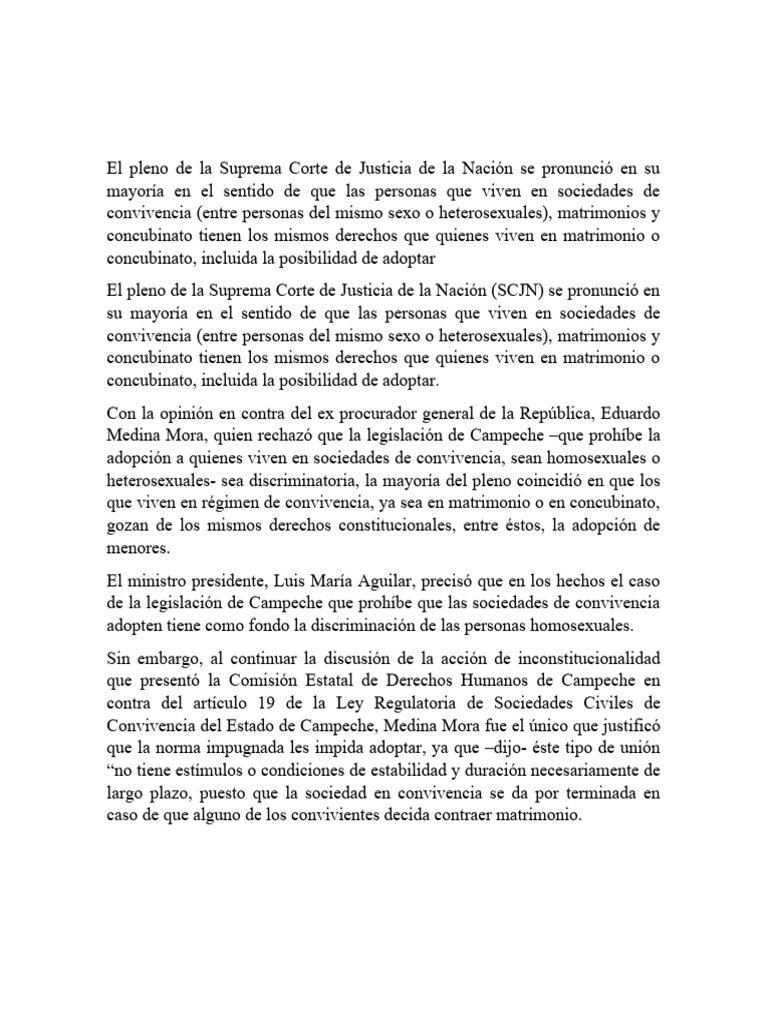 El pleno de la Suprema Corte de Justicia de la Nación se pronunció en su