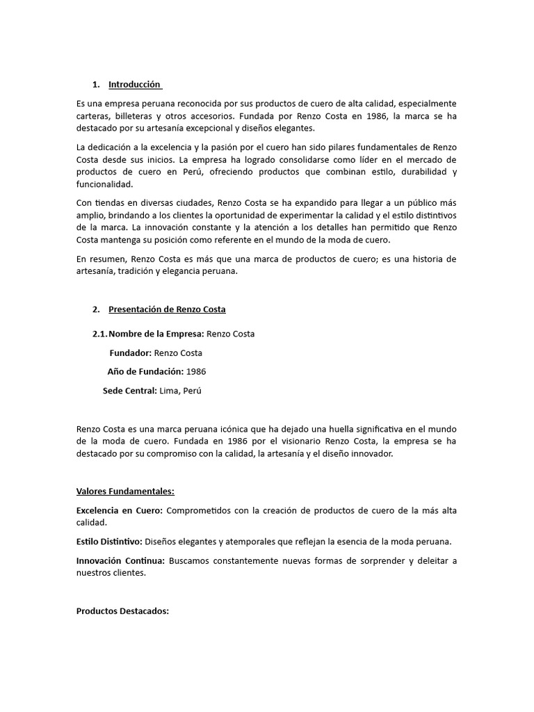 2.1.Nombre de la Empresa: Renzo Costa