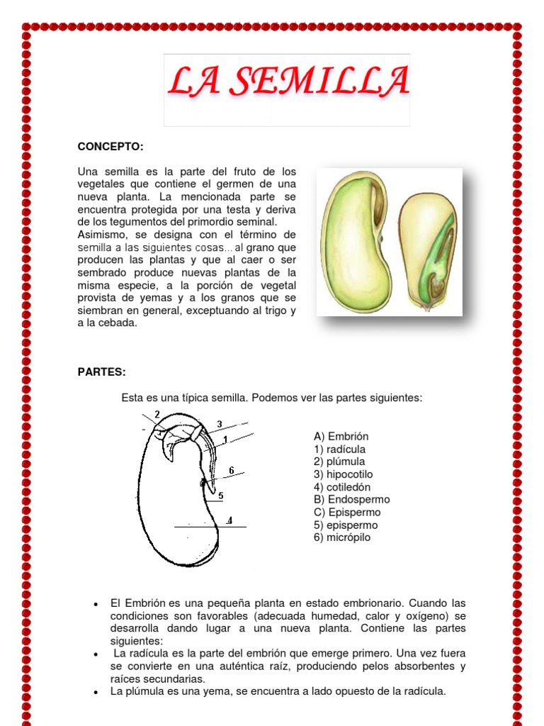 CONCEPTO: Una semilla es la parte del fruto de los vegetales que contiene el germen de una nueva planta.