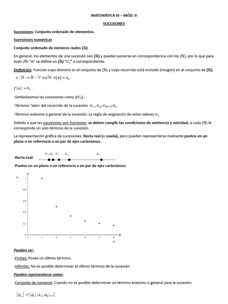 En general, los elementos de una sucesión son (ℝ) y pueden ponerse en correspondencia con los (ℕ), por lo que para