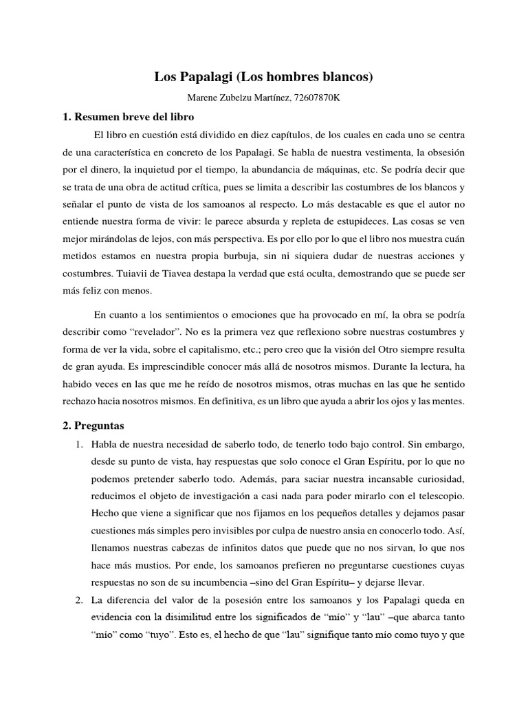Papalagi y los samoanos, criticando así a los últimos, los Otros. En ningún momento deja de