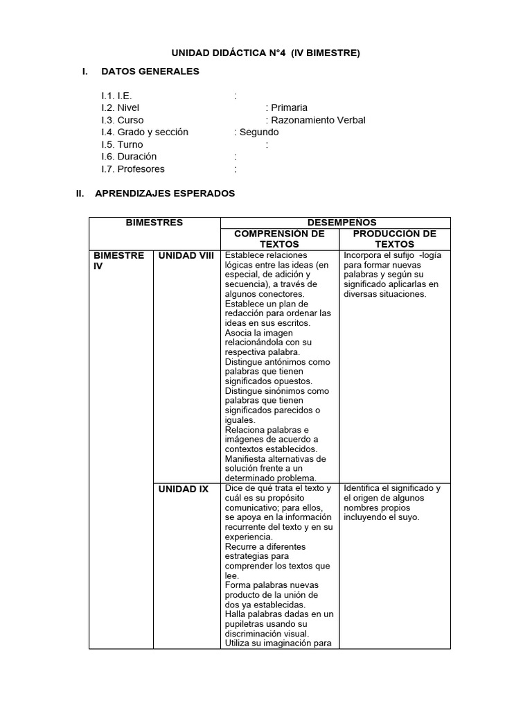 UNIDAD DIDÁCTICA N°4 (IV BIMESTRE)