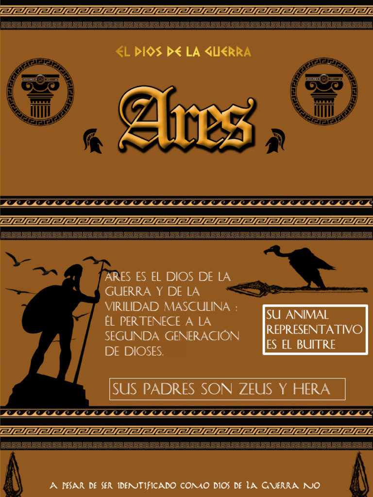 Ares es el dios de la guerra Y de la virilidad masculina ; él pertenece a la segunda generación de dioses,