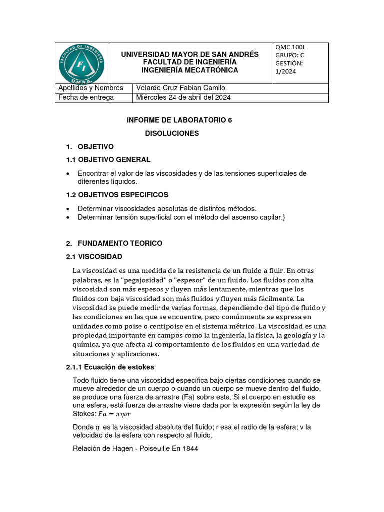 6.3.1. Determinación de la viscosidad con el viscosímetro de Ostwald