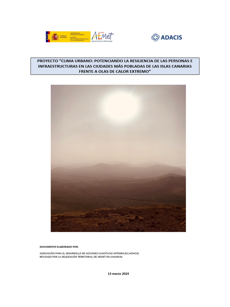 “CLIMA URBANO: POTENCIANDO LA RESILIENCIA DE LAS PERSONAS E INFRAESTRUCTRAS EN LAS CIUDADES MÁS POBLADAS DE LAS OCHO ISLAS CANARIAS FRENTE A OLAS DE CALOR EXTREMO”