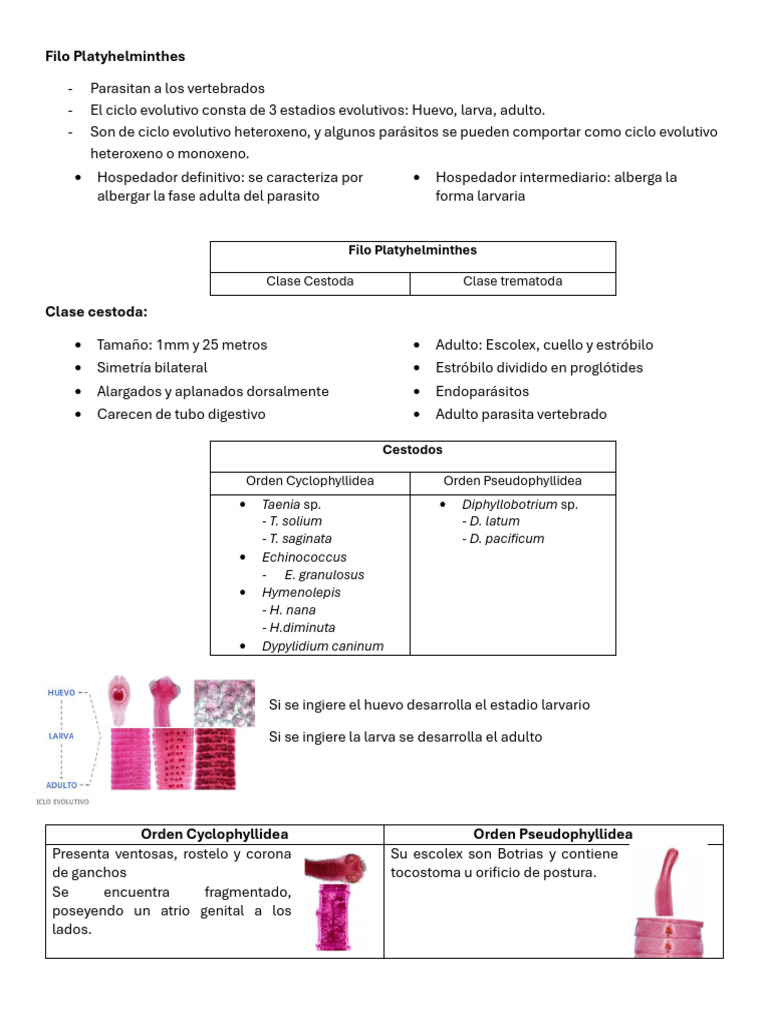 - Estróbilo → conformado por proglótides (inmaduro, maduro y grávido)
