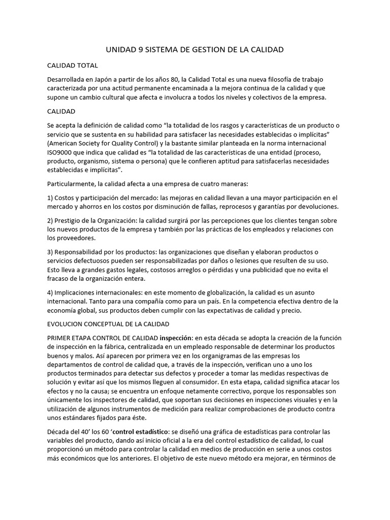 UNIDAD 9 SISTEMA DE GESTION DE LA CALIDAD