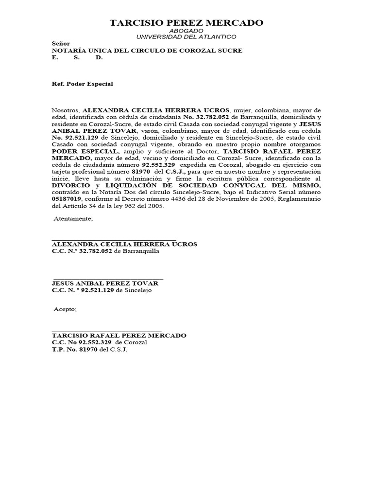 PODER ESPECIAL, amplio y suficiente al Doctor, TARCISIO RAFAEL PEREZ