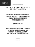 "MEJORAMIENTO Y AMPLIACION DEL SISTEMA DE RIEGO EN LOS BARRIOS CENTRO UNIÓN, CARMEN PAMPA, GENERAL FECHA: