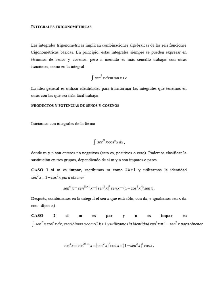 trigonométricas básicas. En principio, estas integrales siempre se pueden expresar en