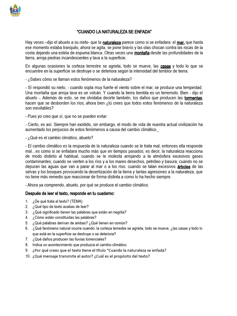 9. ¿Por qué crees que el texto tiene el título “Cuando la naturaleza se enfada?