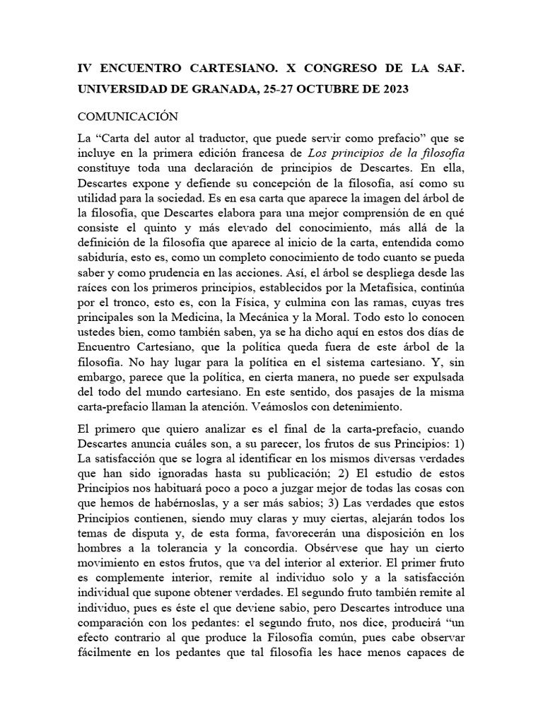 IV ENCUENTRO CARTESIANO. X CONGRESO DE LA SAF.