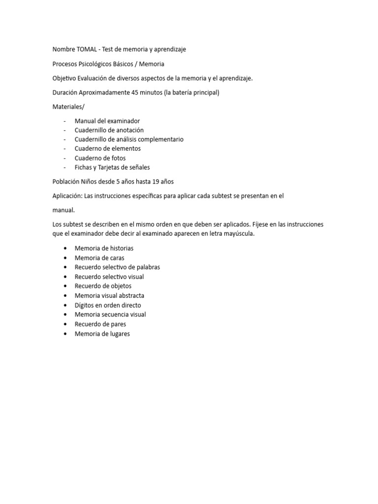 Nombre TOMAL - Test de memoria y aprendizaje